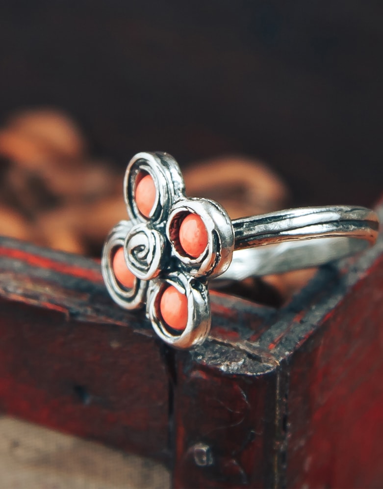 Кольцо со вставкой из коралла